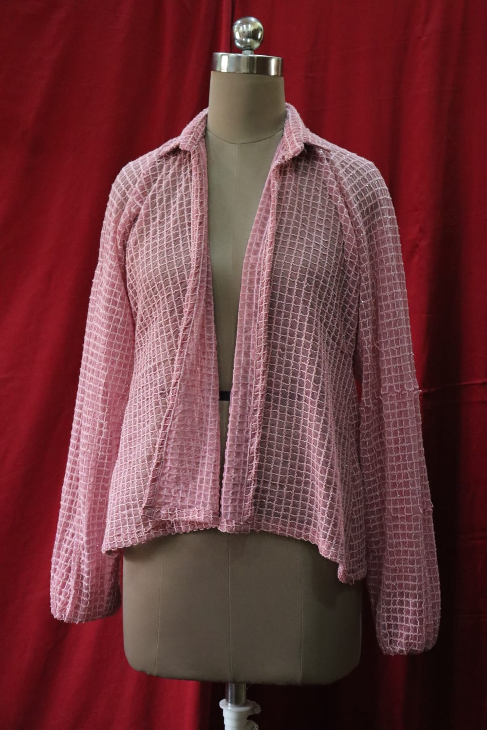 A beautiful balloon-sleeve open shirt in pink color.