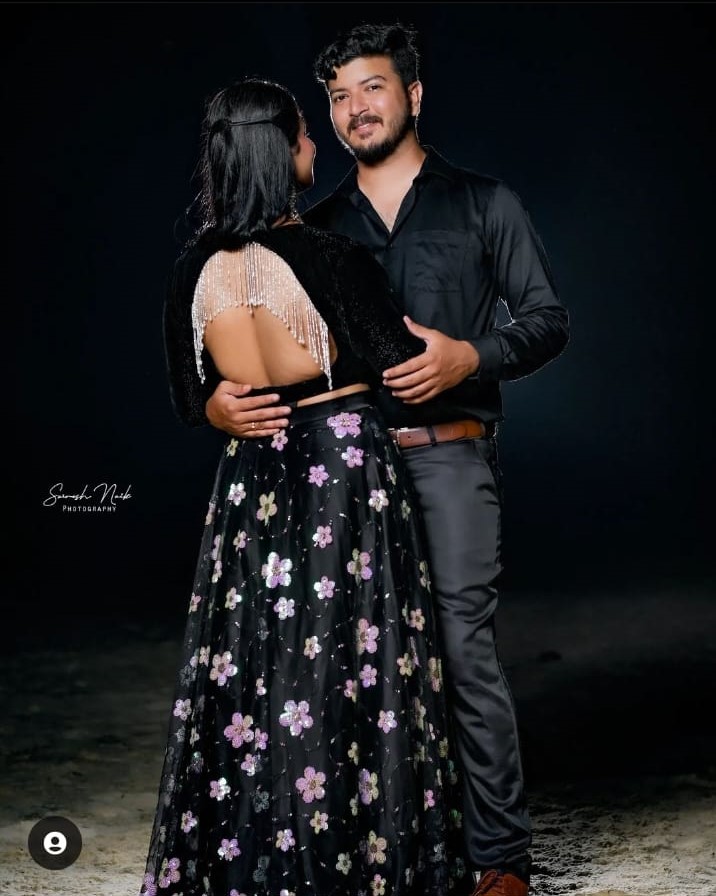 Floral black colour embroidered lehenga with a backless blouse with full sleeves. This can be worn for wedding functions, shoots etc.